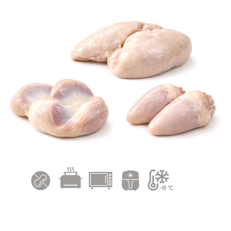 ผลิตภัณฑ์ ไก่นึ่งพร้อมทาน ที่ให้คุณได้เลือกสรรได้ดังใจทั้งเนื้อส่วนอกไก่ สันในไก่ สะโพก ปีก และเครื่องใน บรรจุในขนาด 1,000 กรัม ที่พร้อมจะให้คุณได้สนุกกับการรังสรรค์รสชาติตามในแบบที่คุณต้องการไม่ว่าจะเป็น รสชาติแบบต้นตำรับ รสเทอริยากิ (Teriyaki) รสชาติสไตล์เกาหลี (Korean Style) ญี่ปุ่น (Japanese Style) หรืออเมริกัน (American Style) ก็ตอบโจทย์ทุกเมนูและทุกความต้องการของธุรกิจอาหารได้อย่างสมบูรณ์