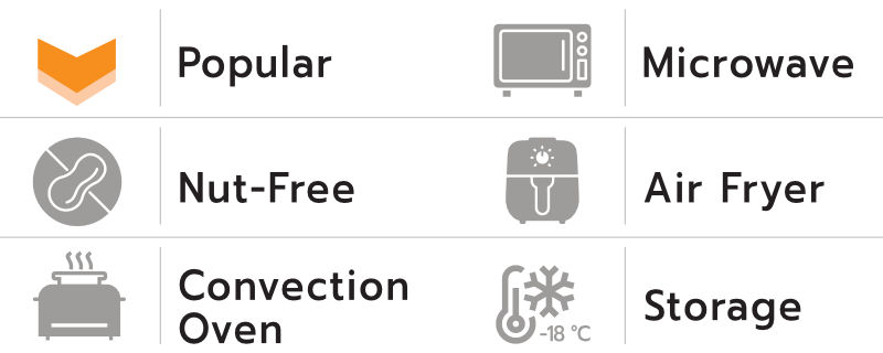 ได้รับการรับรองฮาลาล | ปราศจากส่วนผสมของถั่ว | ปราศจากสารกันเสีย